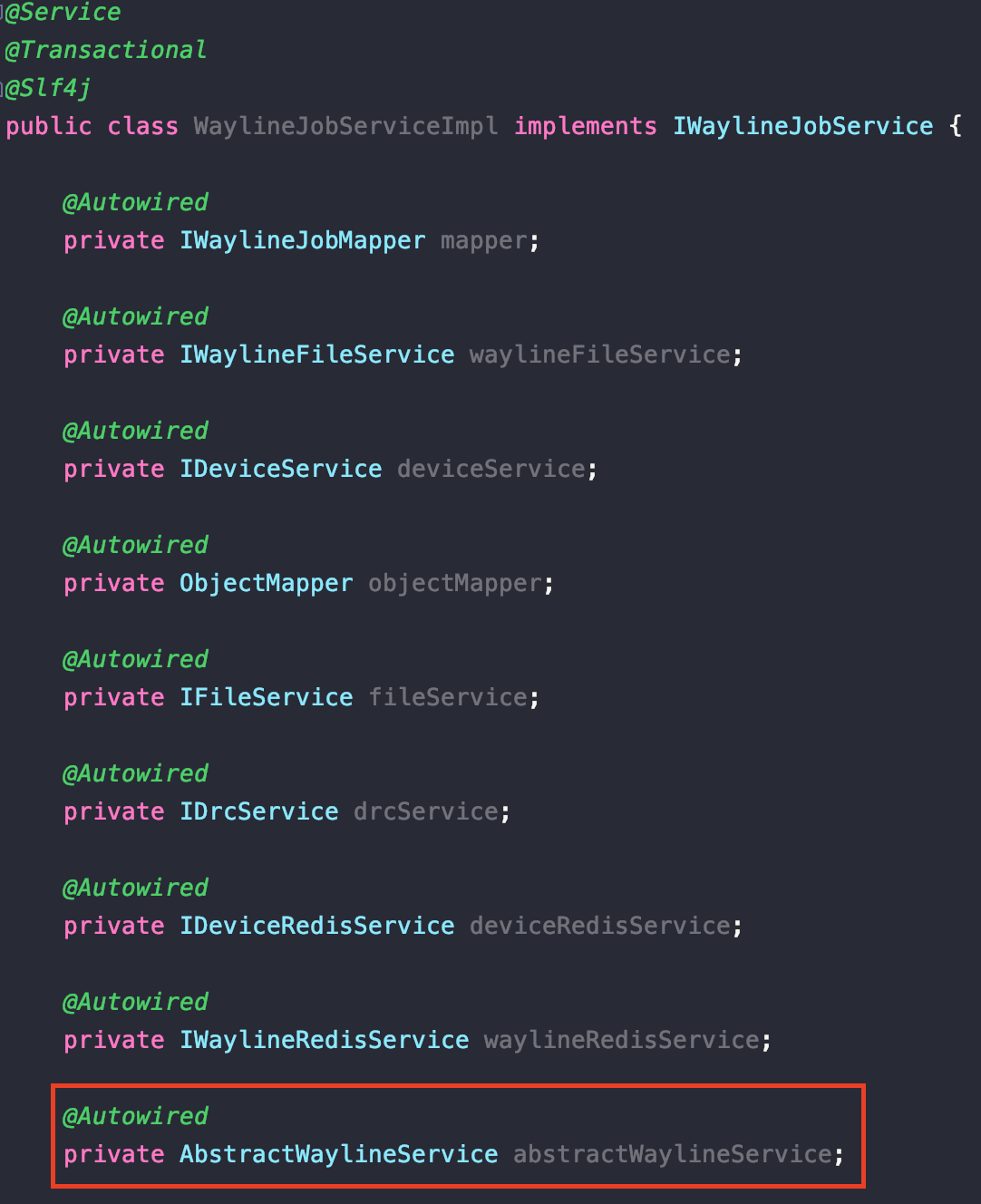 • 在WaylineJobServiceImpl中注入该类;