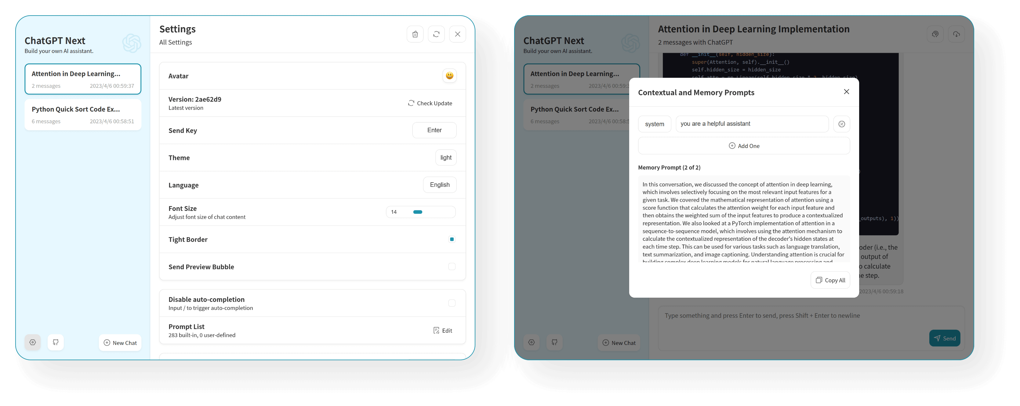 • User Prompt: user can edit and save custom prompts to prompt list