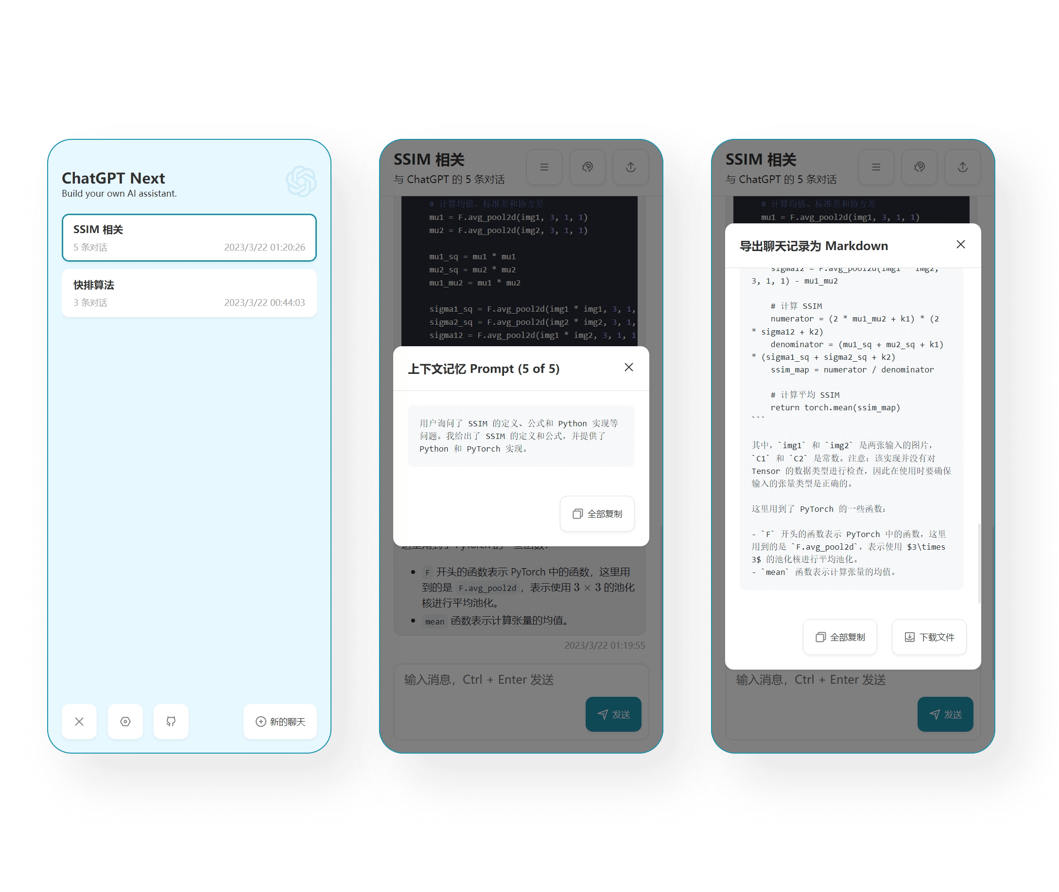 • 一键导出聊天记录,完整的 Markdown 支持